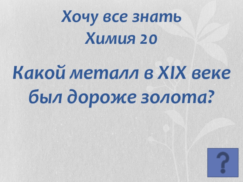Хочу все знать Химия 20Какой металл в XIX веке был дороже золота?