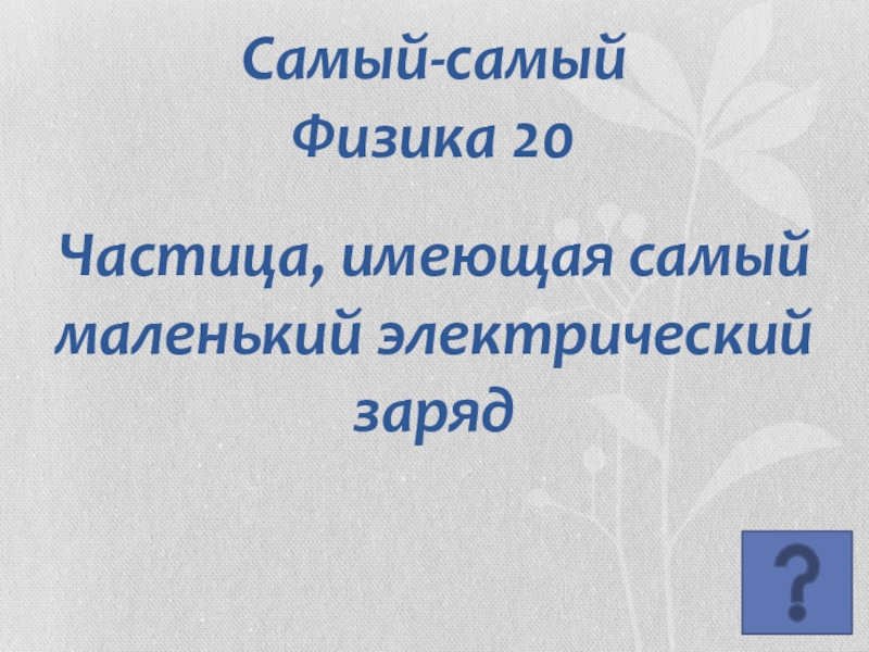 Самый-самый  Физика 20Частица, имеющая самый маленький электрический заряд