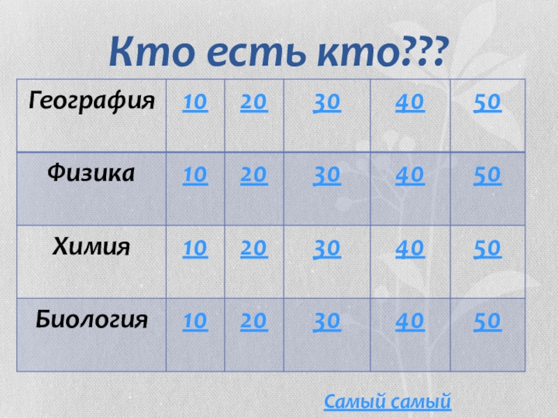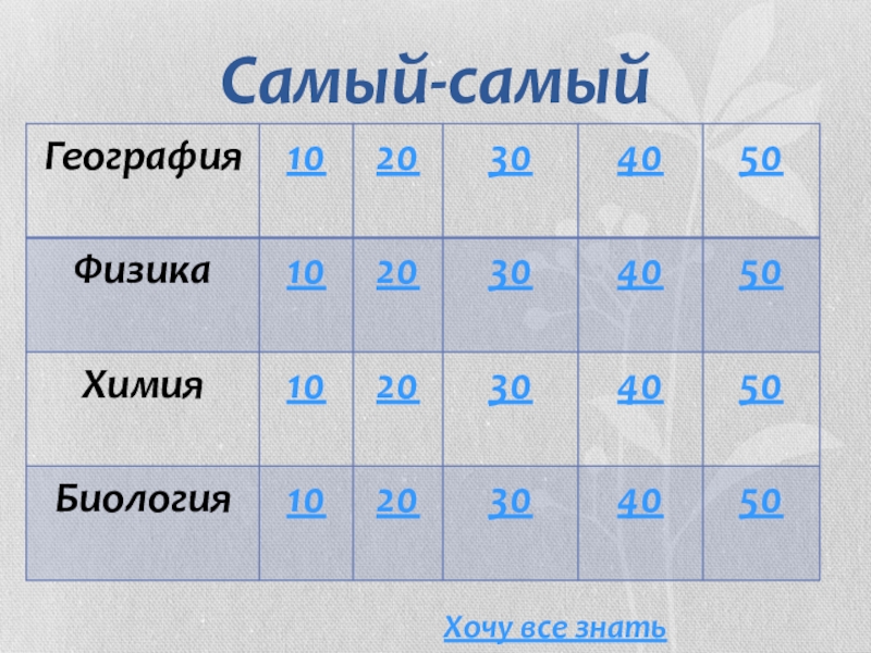 Презентация, доклад к викторине на неделю естественно научного цикла Своя игра