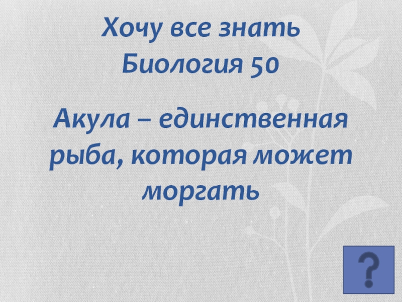 Хочу все знать Биология 50Акула – единственная рыба, которая может моргать