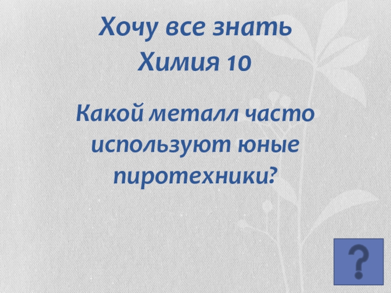 Хочу все знать Химия 10Какой металл часто используют юные пиротехники?