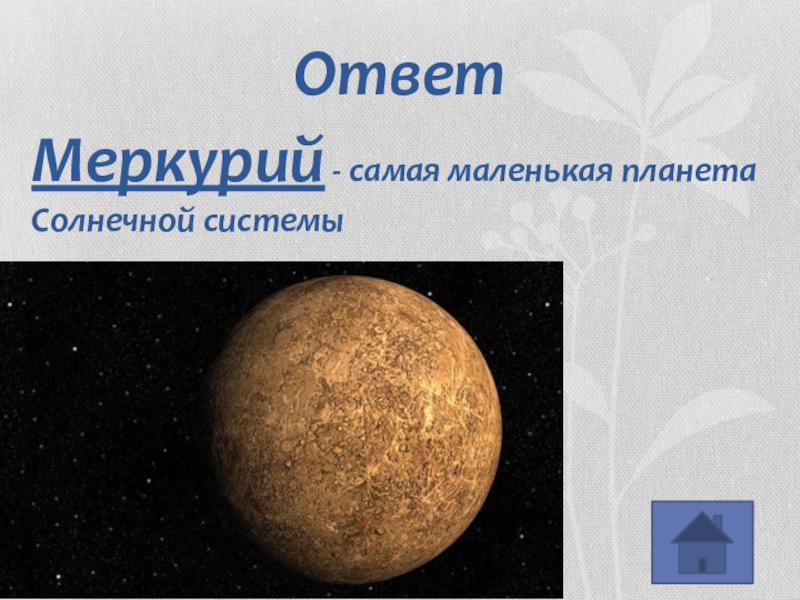 ОтветМеркурий - самая маленькая планета Солнечной системы