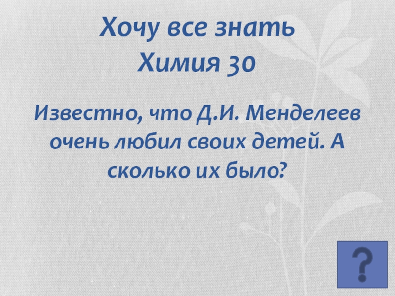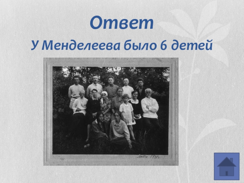 Хочу все знать Химия 30Известно, что Д.И. Менделеев очень любил своих детей. А сколько их было?