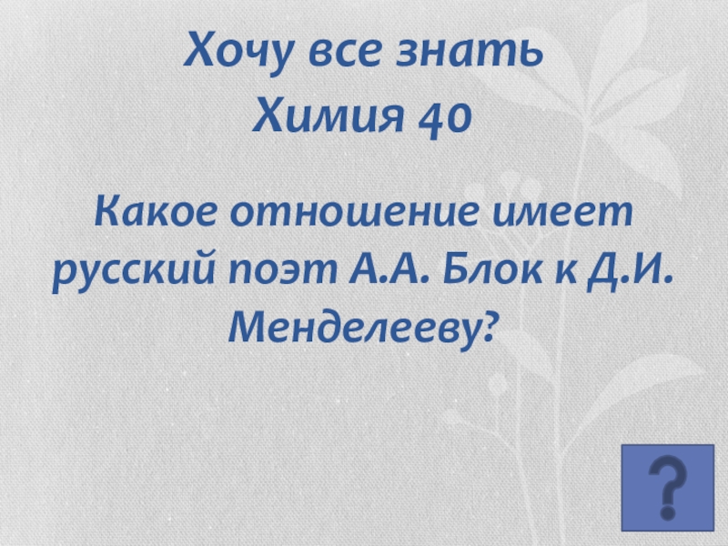 Хочу все знать Химия 40Какое отношение имеет русский поэт А.А. Блок к Д.И. Менделееву?