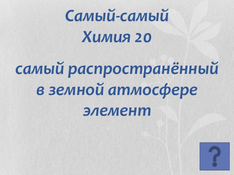 Самый-самый  Химия 20самый распространённый в земной атмосфере элемент