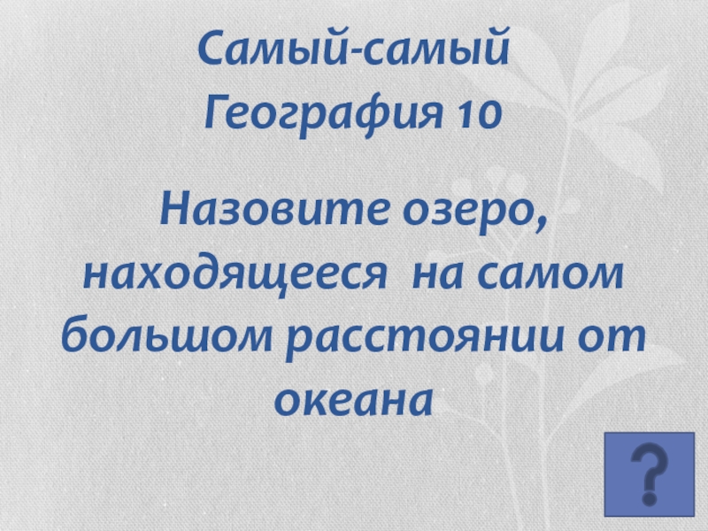 Самый-самый  География 10Назовите озеро, находящееся на самом большом расстоянии от океана