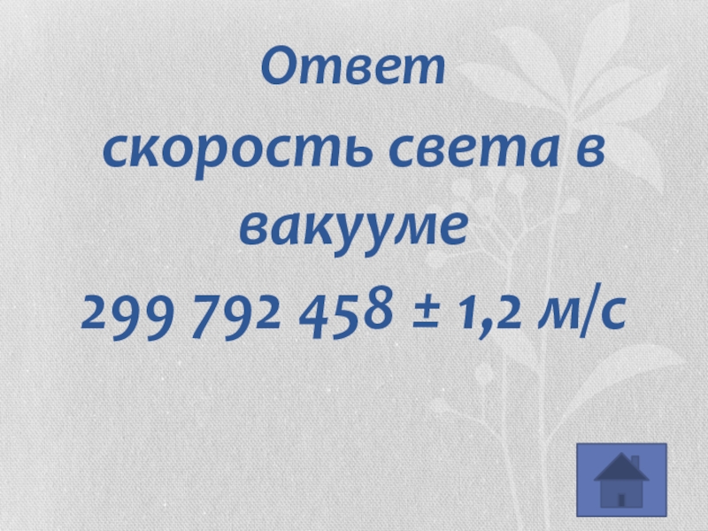 Ответскорость света в вакууме 299 792 458 ± 1,2 м/с