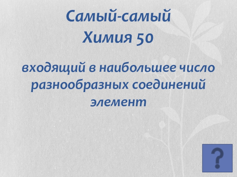 Самый-самый  Химия 50входящий в наибольшее число разнообразных соединений элемент