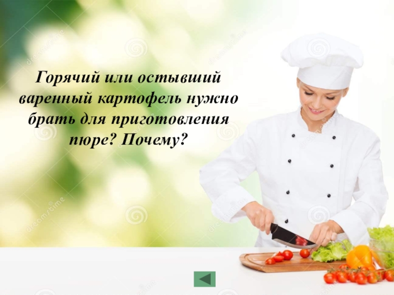 Слайд 8Горячий или остывший варенный картофель нужно брать для приготовления пюре? Почему?