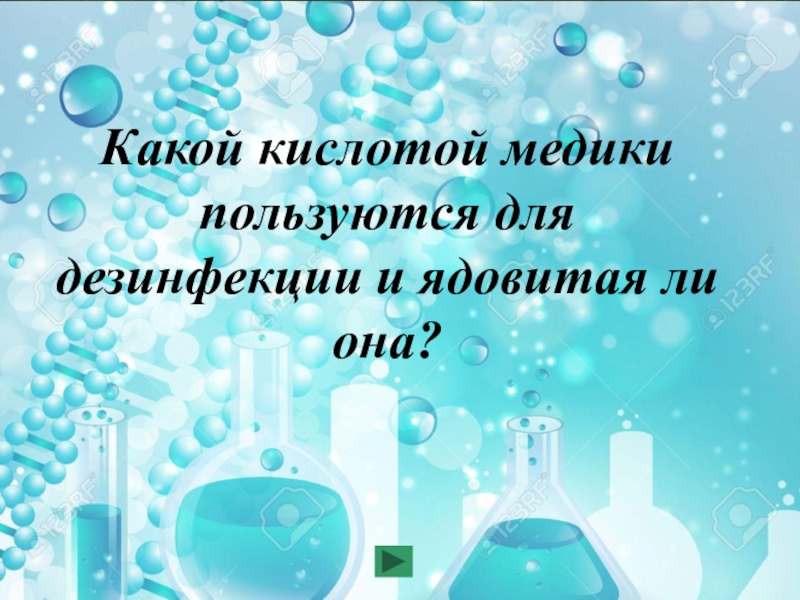 Какой кислотой медики пользуются для дезинфекции и ядовитая ли она?