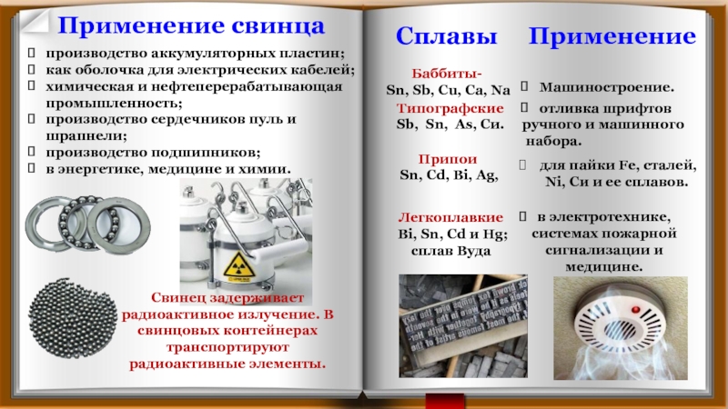 Свинец задерживает радиоактивное излучение. В свинцовых контейнерах транспортируют радиоактивные элементы.