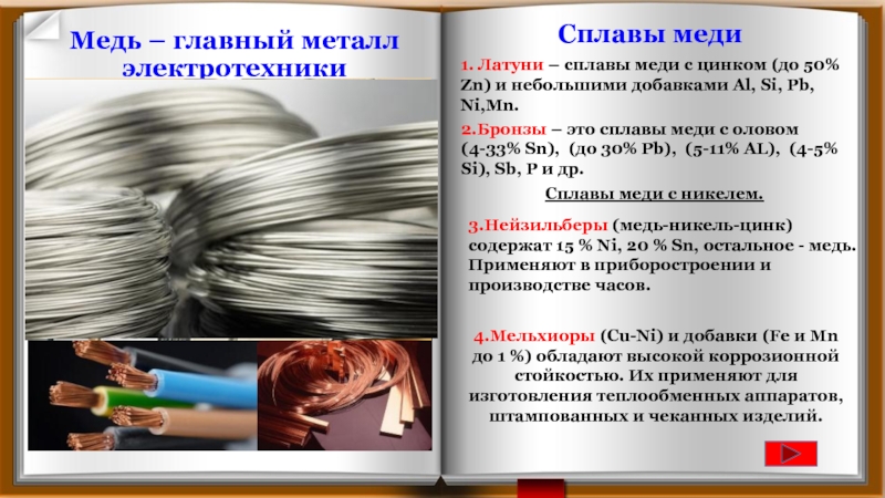 3.Нейзильберы (медь-никель-цинк) содержат 15 % Ni, 20 % Sn, остальное - медь. Применяют в приборостроении и производстве часов.