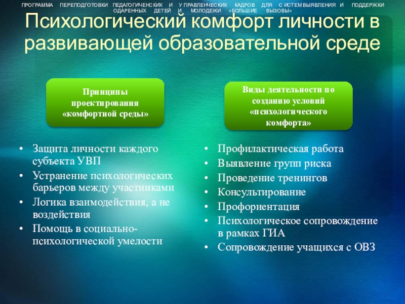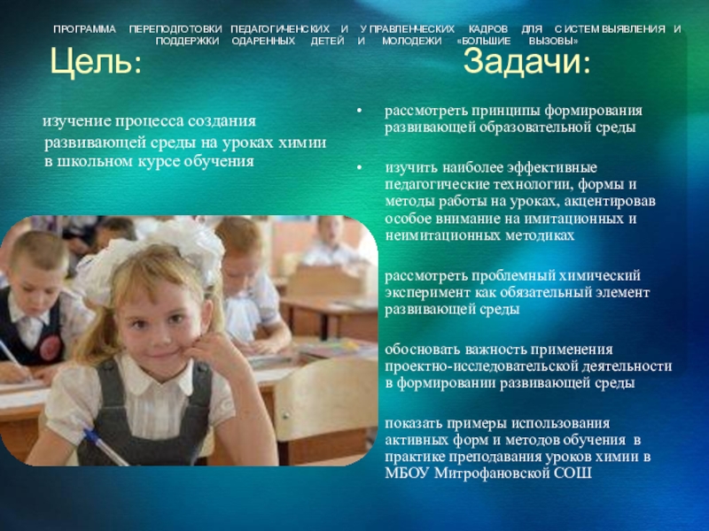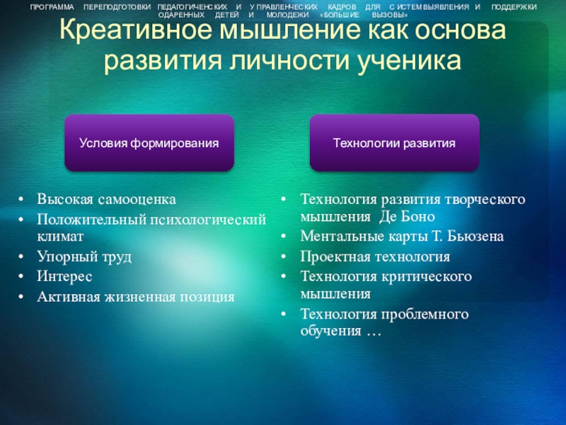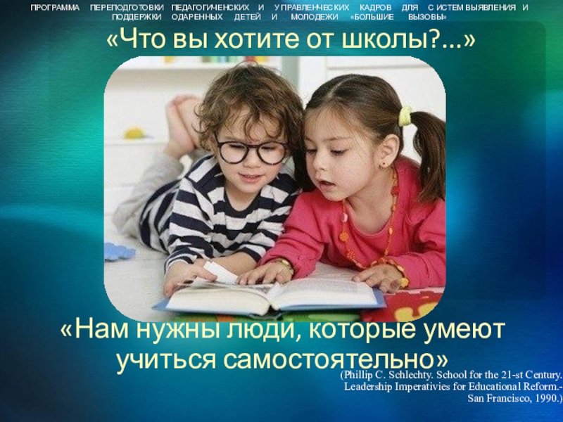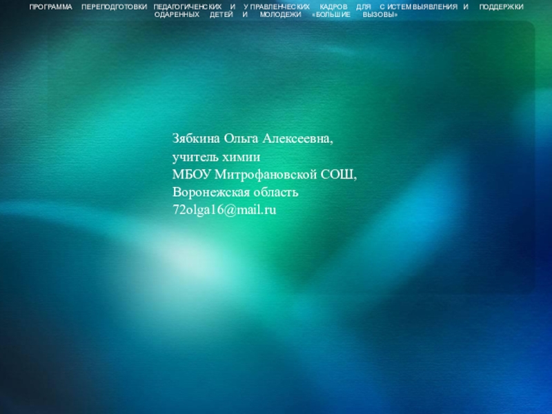 ПРОГРАММА ПЕРЕПОДГОТОВКИ ПЕДАГОГИЧЕНСКИХ И У ПРАВЛЕНЧЕСКИХ КАДРОВ ДЛЯ С ИСТЕМ ВЫЯВЛЕНИЯ И ПОДДЕРЖКИ ОДАРЕННЫХ ДЕТЕЙ И МОЛОДЕЖИ «БОЛЬШИЕ ВЫЗОВЫ»