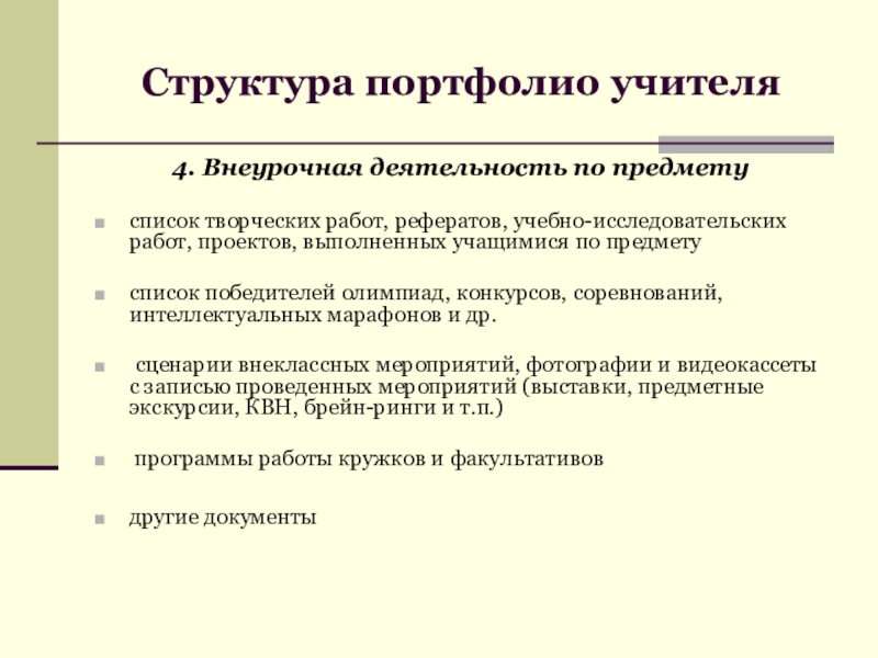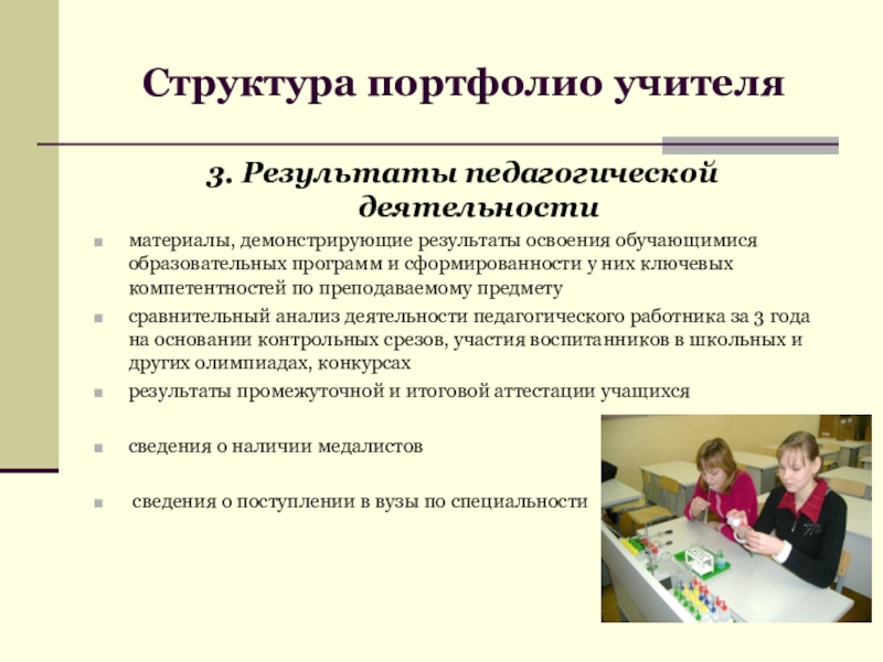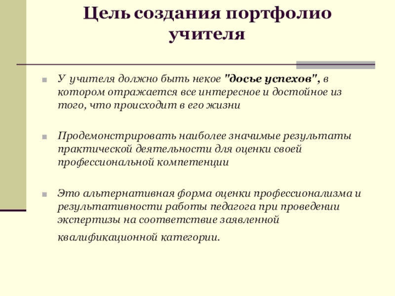 Портфолио достижений - в данном случае наибольший акцент нужно