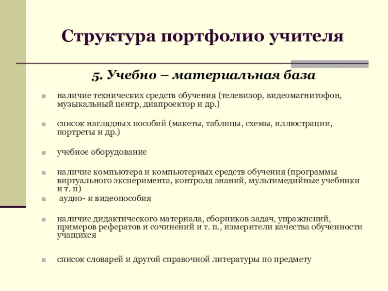наличие дидактического материала, сборников задач, упражнений, примеров рефератов и сочинений и т. п., измерители качества обученности учащихся