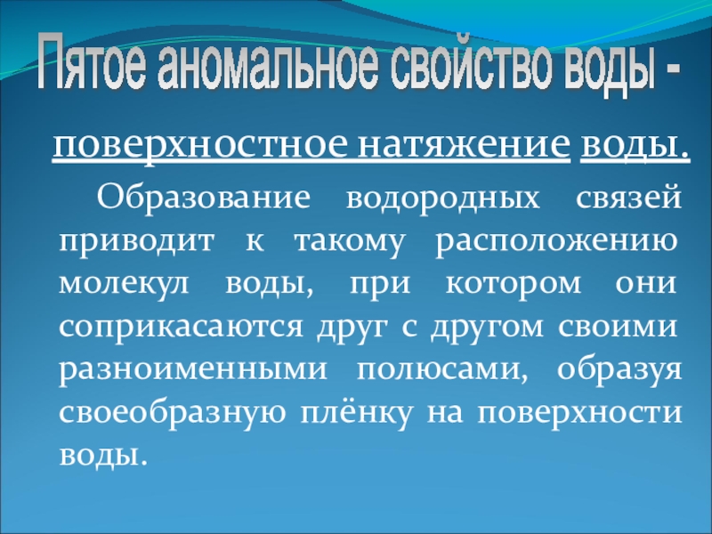 Пятое аномальное свойство воды -
