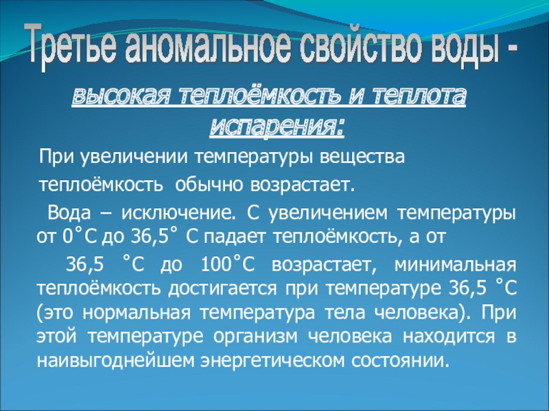 Третье аномальное свойство воды -