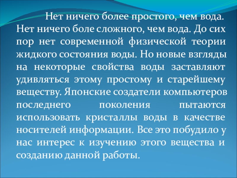 Второе аномальное свойство воды –