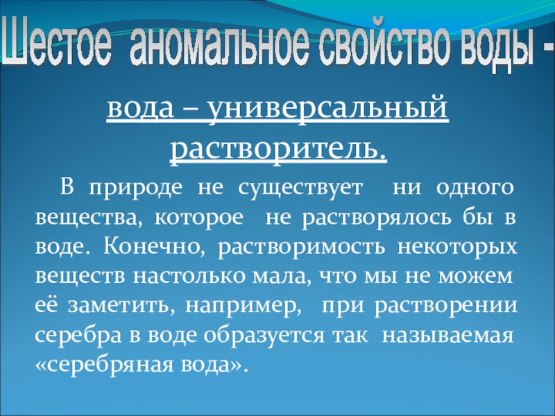 Шестое аномальное свойство воды -