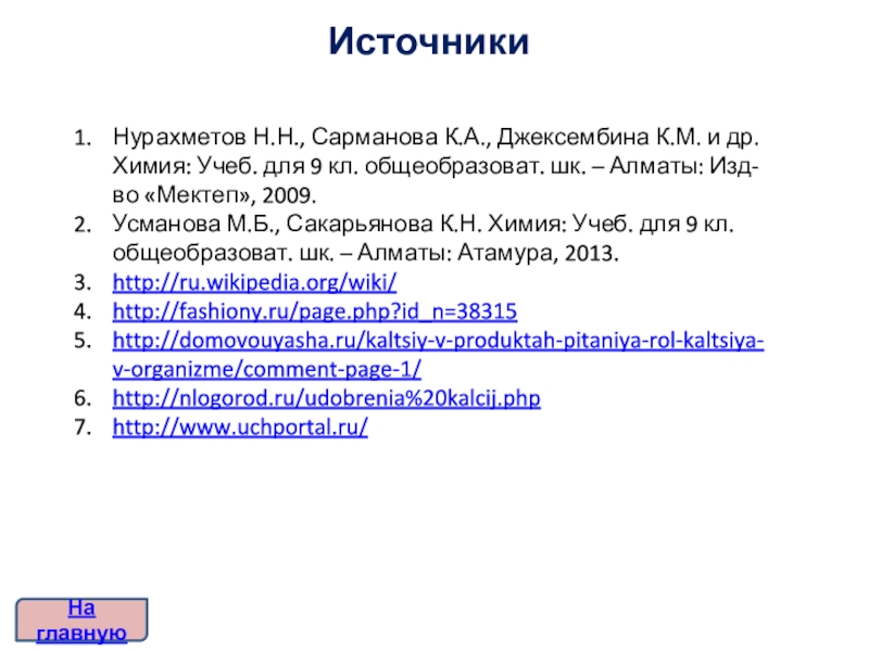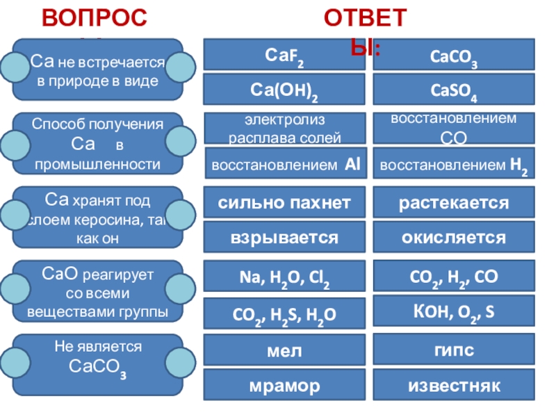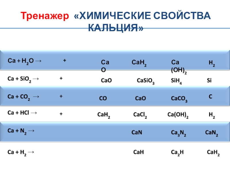 Тренажер «химические свойства кальция»