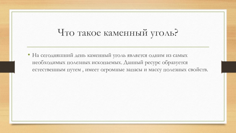 Что такое каменный уголь?На сегодняшний день каменный уголь является одним из самых необходимых полезных ископаемых. Данный ресурс образуется естественным путем , имеет огромные запасы и массу полезных свойств.