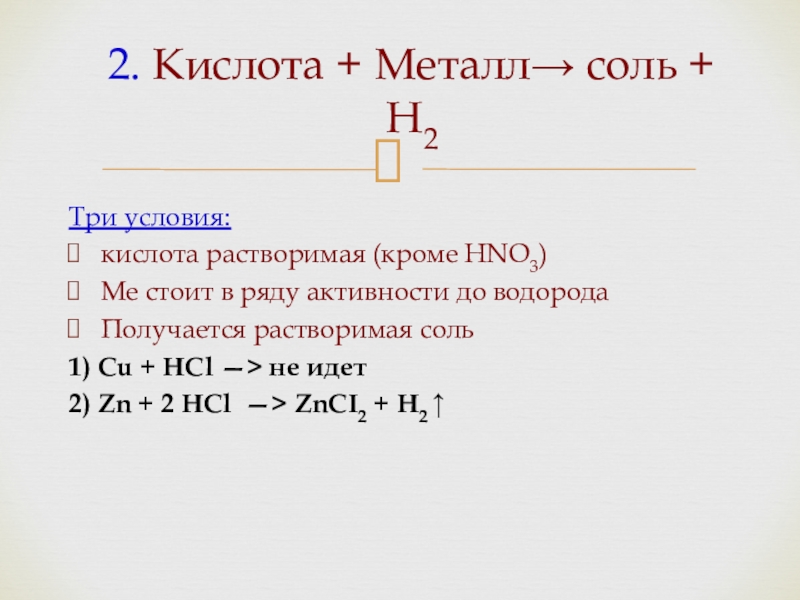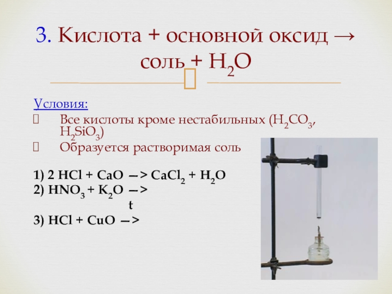5. Кислота + основание → соль + Н2О (реакция нейтрализации)