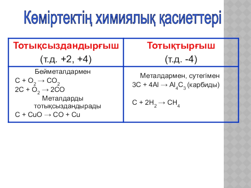 С + 2Cl2= CCl4 (бағалы еріткіш) өрт сөндіруде қолданылады.