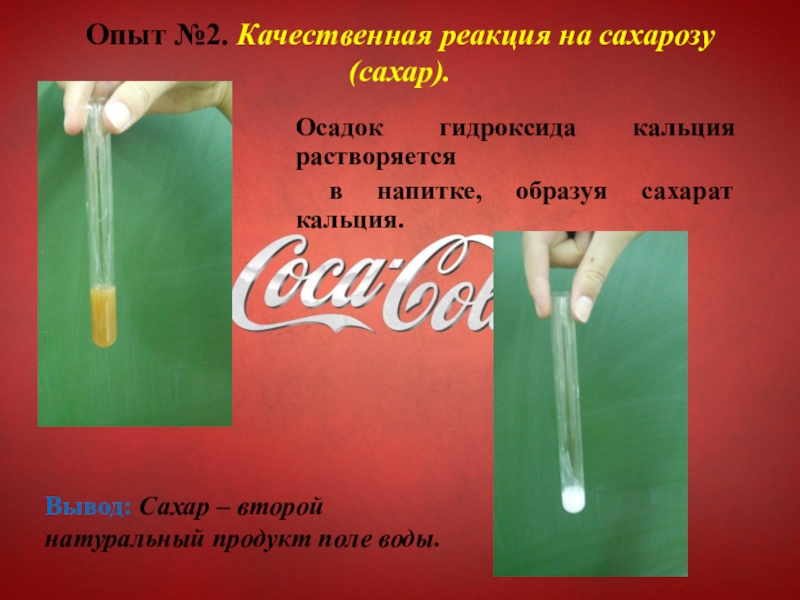 Вывод: Сахар – второй натуральный продукт поле воды.