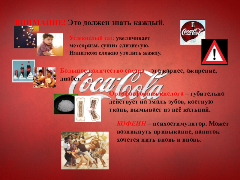 Ортофосфорная кислота – губительно действует на эмаль зубов, костную ткань, вымывает из неё кальций.