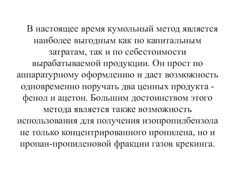 Слайд 17В настоящее время кумольный метод является наиболее выгодным как по капитальным