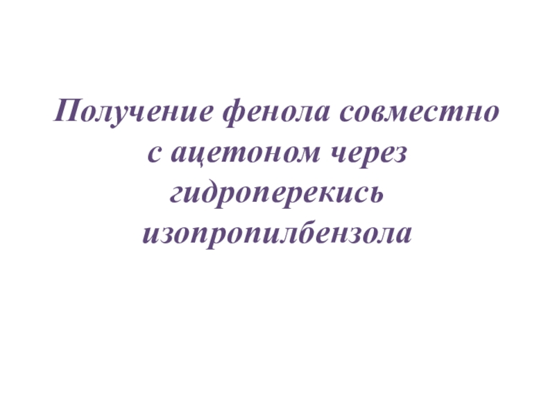Слайд 8Получение фенола совместно с ацетоном через гидроперекись изопропилбензола