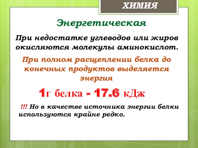 !!! Но в качестве источника энергии белки используются крайне редко.