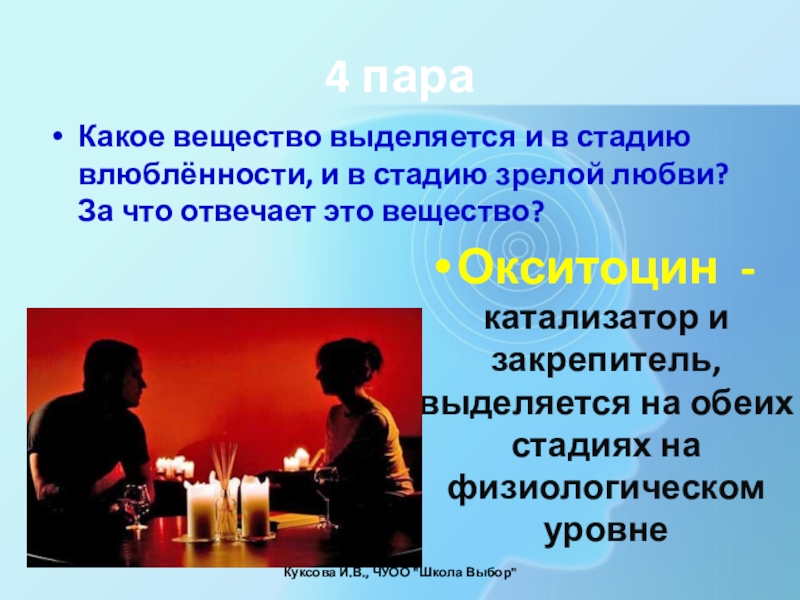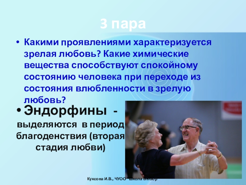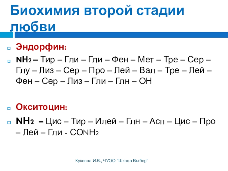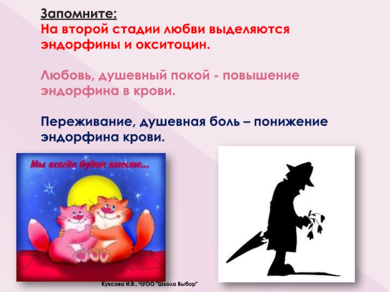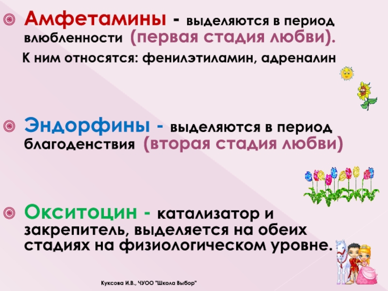 Эндорфины - выделяются в период благоденствия (вторая стадия любви)