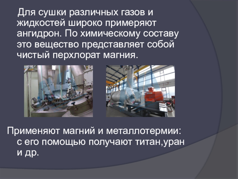 Слайд 14 Для сушки различных газов и жидкостей широко примеряют ангидрон.