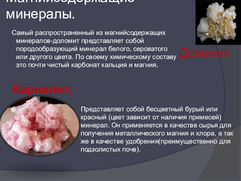Самый распространенный из магнийсодержащих минералов-доломит представляет собой породообразующий