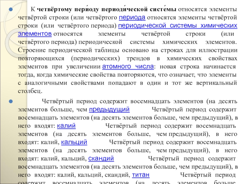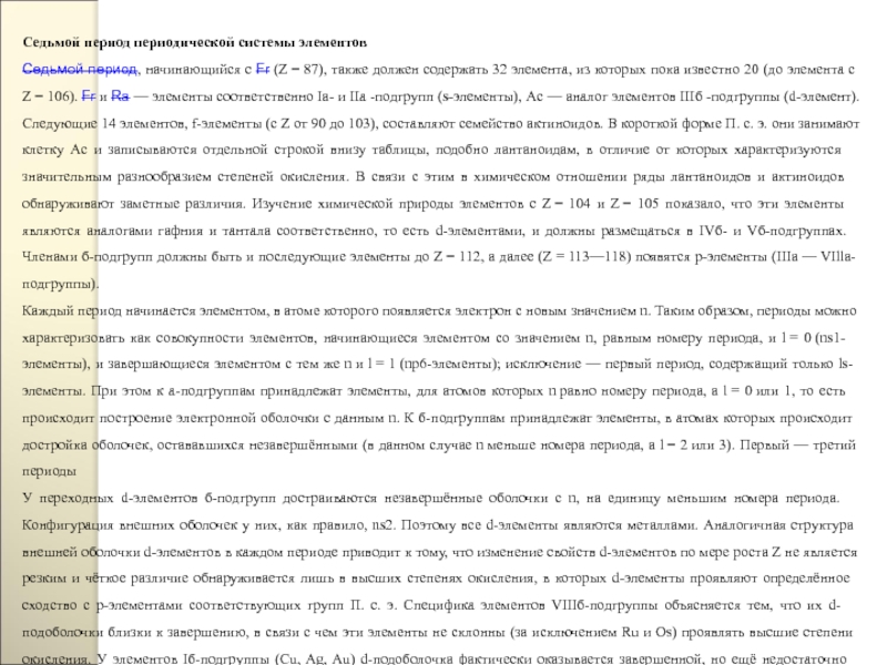 Слайд 20К пе́рвому пери́оду периоди́ческой систе́мы относятся элементы первой строки (или первого