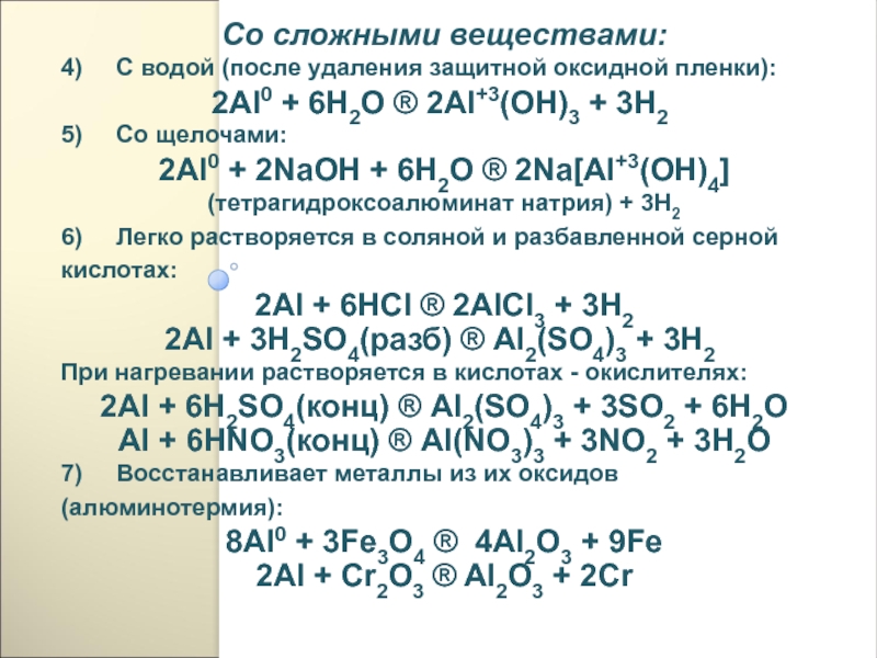 2Al + 6H2SO4(конц) ® Al2(SO4)3 + 3SO2 + 6H2O