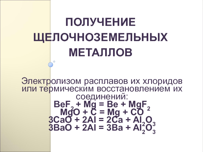 Слайд 210ПОЛУЧЕНИЕ ЩЕЛОЧНОЗЕМЕЛЬНЫХ МЕТАЛЛОВ