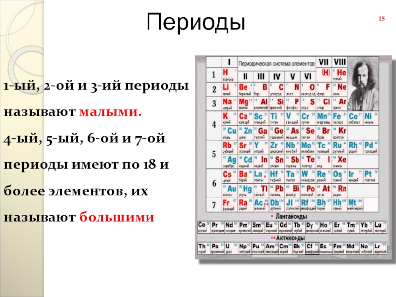 1-ый, 2-ой и 3-ий периоды называют малыми.