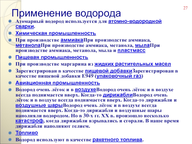Простое вещество водород — H2 — лёгкий бесцветный — лёгкий бесцветный газ — лёгкий бесцветный газ. В смеси с воздухом — лёгкий бесцветный газ. В смеси с воздухом или кислородом — лёгкий бесцветный газ. В смеси с воздухом или кислородом горюч — лёгкий бесцветный газ. В смеси с воздухом или кислородом горюч и взрывоопасен — лёгкий бесцветный газ. В смеси с воздухом или кислородом горюч и взрывоопасен. Нетоксичен — лёгкий бесцветный газ. В смеси с воздухом или кислородом горюч и взрывоопасен. Нетоксичен. Растворим — лёгкий бесцветный газ. В смеси с воздухом или кислородом горюч и взрывоопасен. Нетоксичен. Растворим в этаноле — лёгкий бесцветный газ. В смеси с воздухом или кислородом горюч и взрывоопасен. Нетоксичен. Растворим в этаноле и ряде металлов — лёгкий бесцветный газ. В смеси с воздухом или кислородом горюч и взрывоопасен. Нетоксичен. Растворим в этаноле и ряде металлов: железе — лёгкий бесцветный газ. В смеси с воздухом или кислородом горюч и взрывоопасен. Нетоксичен. Растворим в этаноле и ряде металлов: железе, никеле — лёгкий бесцветный газ. В смеси с воздухом или кислородом горюч и взрывоопасен. Нетоксичен. Растворим в этаноле и ряде металлов: железе, никеле, палладии — лёгкий бесцветный газ. В смеси с воздухом или кислородом горюч и взрывоопасен. Нетоксичен. Растворим в этаноле и ряде металлов: железе, никеле, палладии, платине.