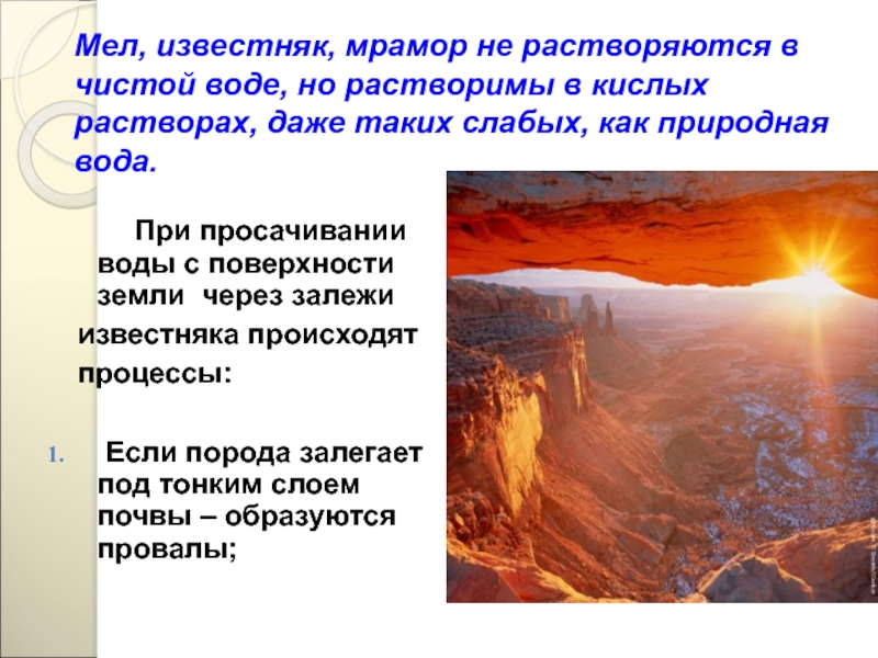 Если порода залегает под тонким слоем почвы – образуются провалы;