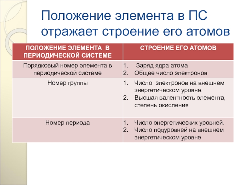 Слайд 216Положение элемента в ПС отражает строение его атомов