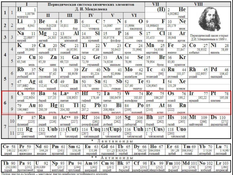 Периодическая система химических элементов (таблица Менделеева) - классификация