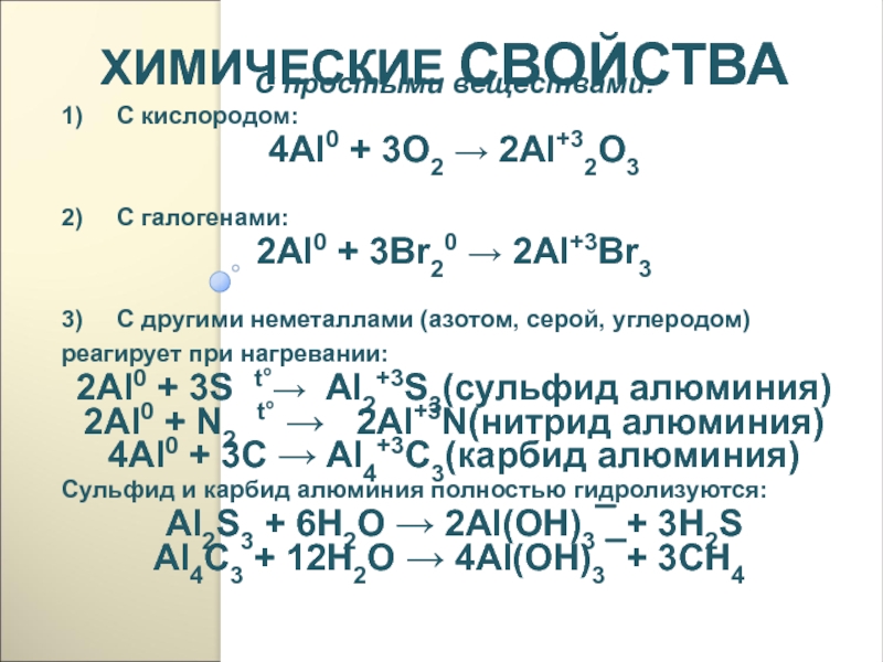 2Al0 + 3S t°→ Al2+3S3(сульфид алюминия)