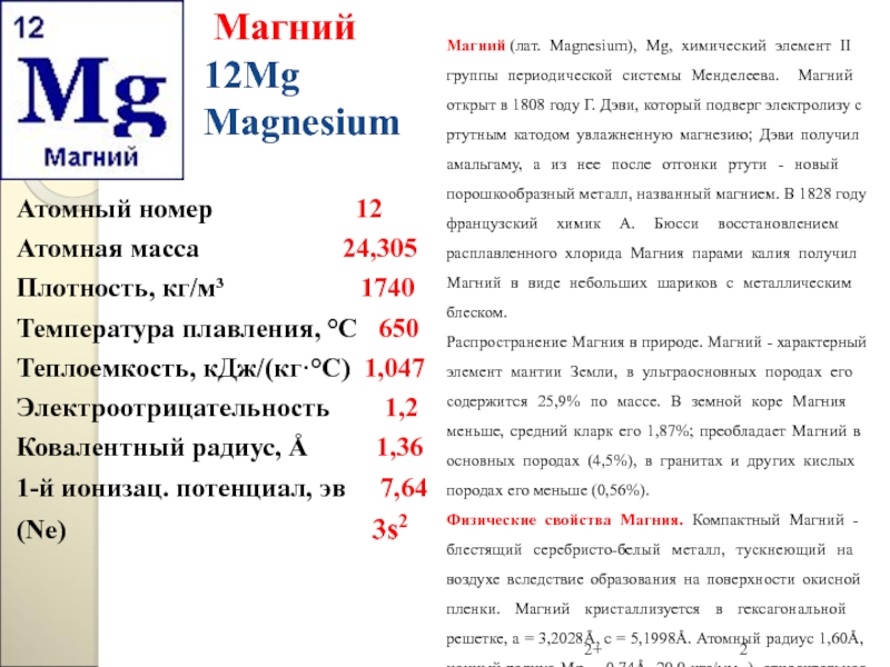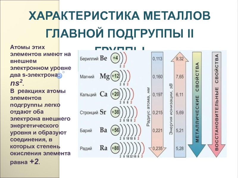 Слайд 212ХАРАКТЕРИСТИКА МЕТАЛЛОВ ГЛАВНОЙ ПОДГРУППЫ II ГРУППЫ