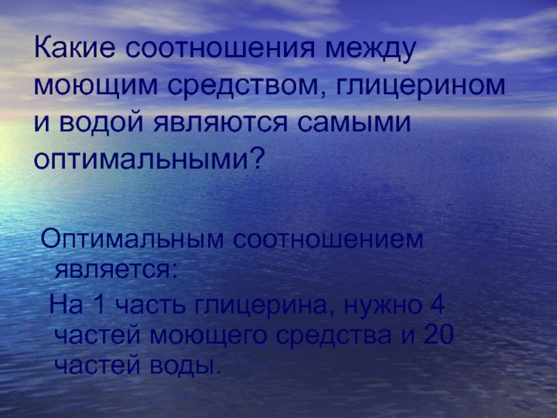 Берем 1 литр дистиллированной воды и добавляем 100 мл. моющего средства.