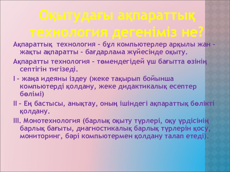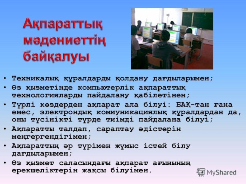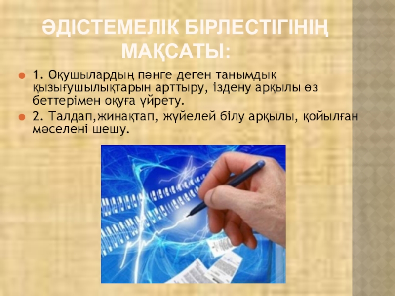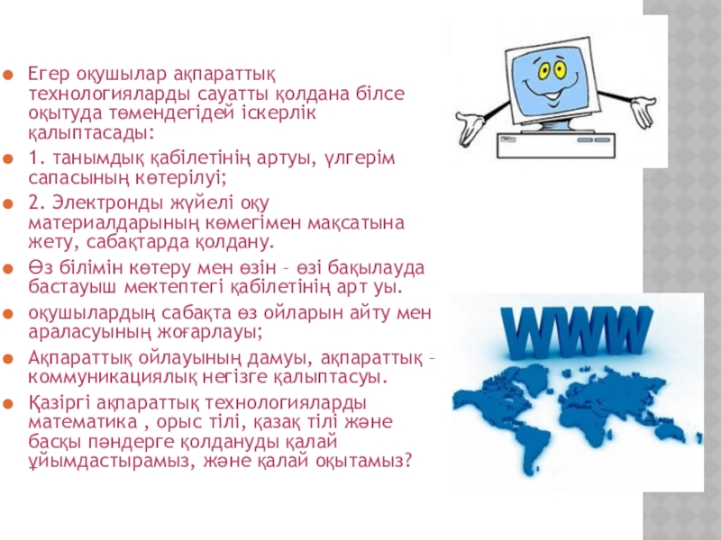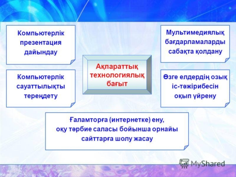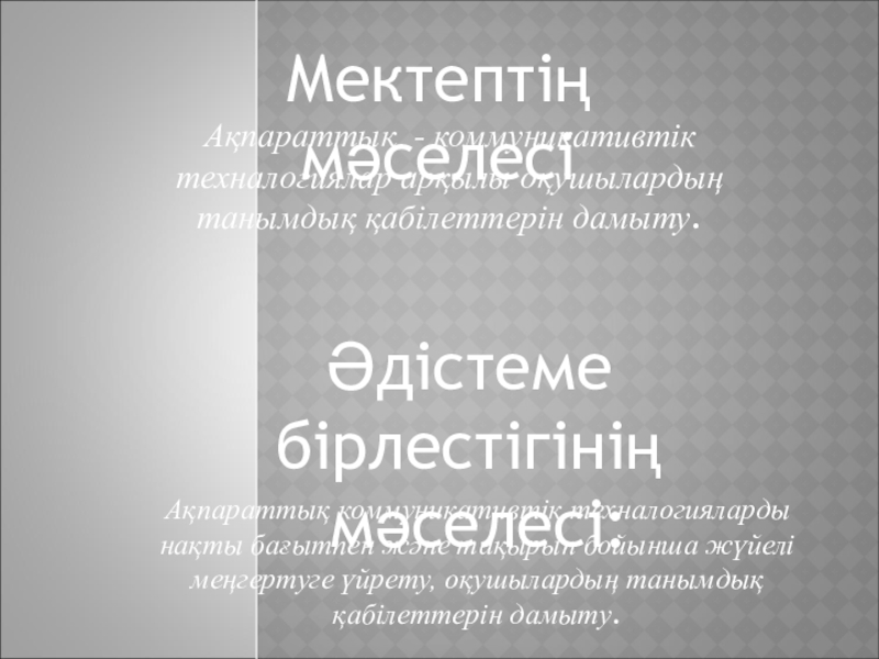 Ақпараттық коммуникативтік техналогияларды нақты бағытпен және тақырып бойынша жүйелі меңгертуге үйрету, оқушылардың танымдық қабілеттерін дамыту.