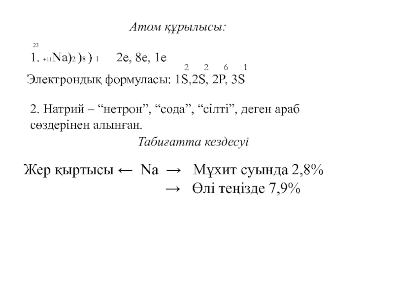2. Натрий – “нетрон”, “сода”, “сілті”, деген араб сөздерінен алынған.