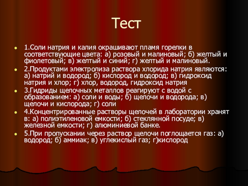 1.Соли натрия и калия окрашивают пламя горелки в соответствующие цвета: а)