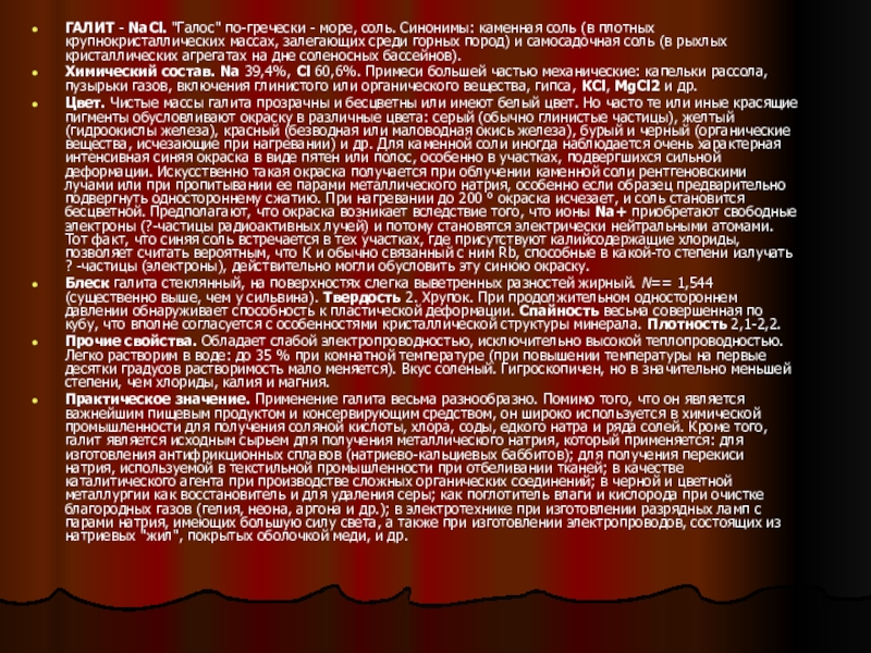 Слайд 15ГАЛИТ - NaCl. "Галос" по-гречески - море, соль. Синонимы: каменная соль
